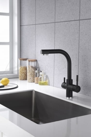 Bateria kuchenna Alabama czarny metalic to połączenie funkcjonalności z wysmakowanym designem. Posiada elegancko wyprofilowaną wylewkę, która pasuje do wielu wnętrz. Zastosowanie tego rodzaju kranu umożliwia pobieranie wody filtrowanej oraz sieciowej (zimnej i gorącej) z jednego miejsca.